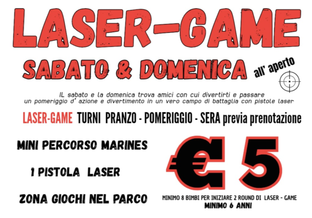 Il sabato e la domenica trova amici con cui divertirti e passare un pomeriggio d’azione e divertimento in un vero campo di battaglia con pistole laser.